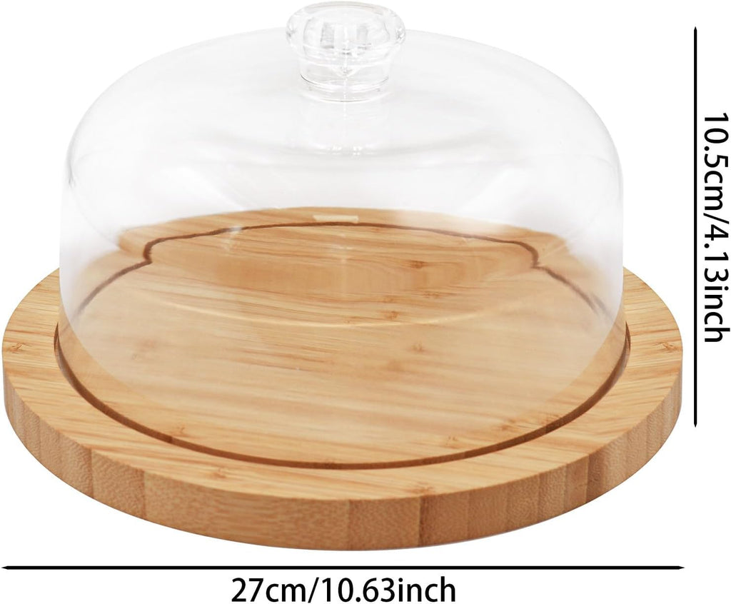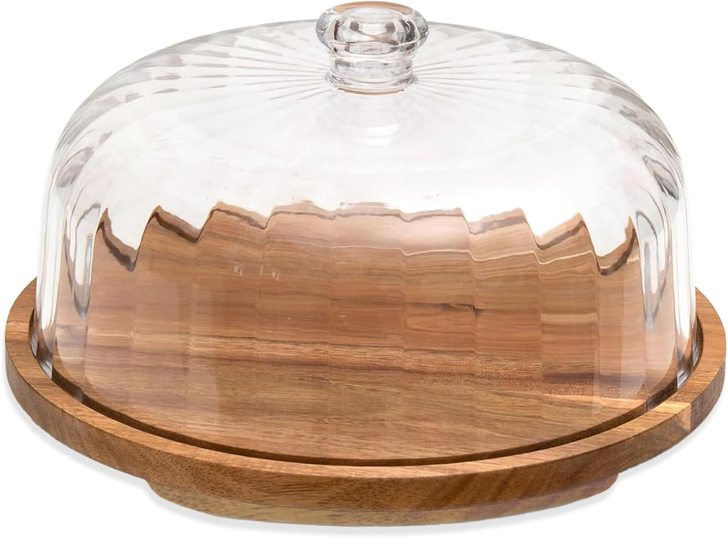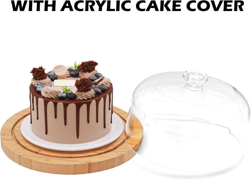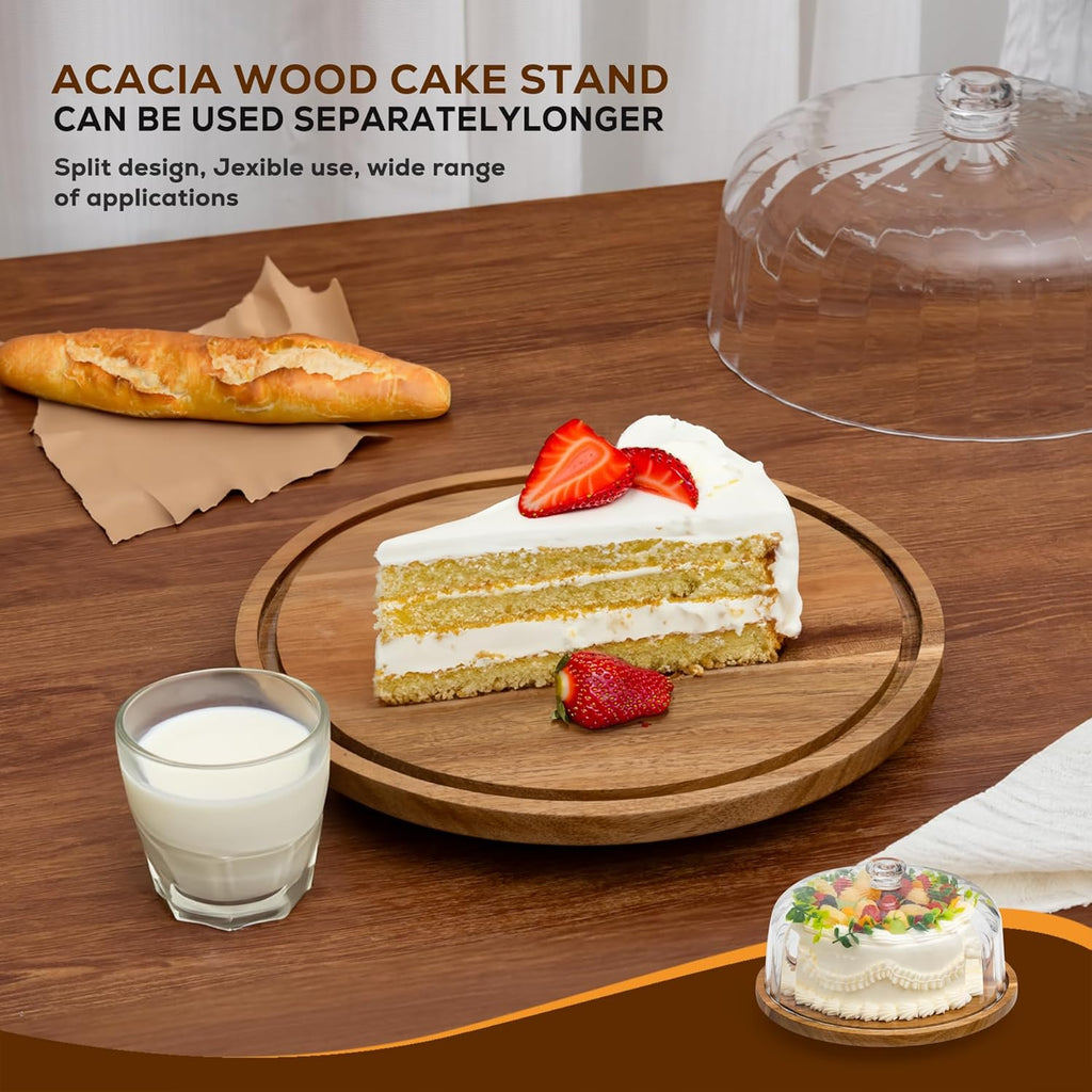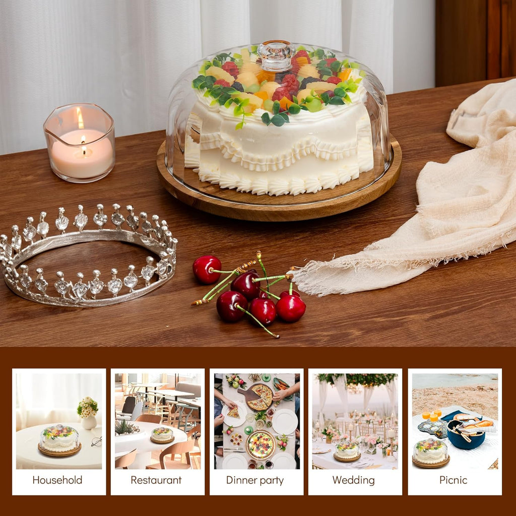 - Suporte de bolo com tampa: combinação de madeira de acácia e cobertura acrílica, bonita e generosa, bandeja giratória para melhor exibição de alimentos, adequada para casamento, reunião de família, festa de aniversário, presente de panificação.