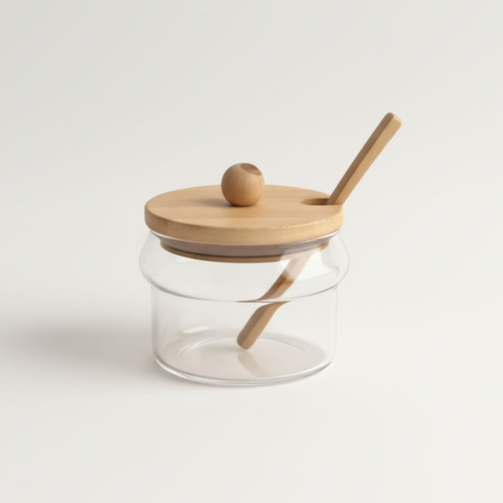 Prático e sofisticado, perfeito para açúcar, adoçante ou chocolate em pó.