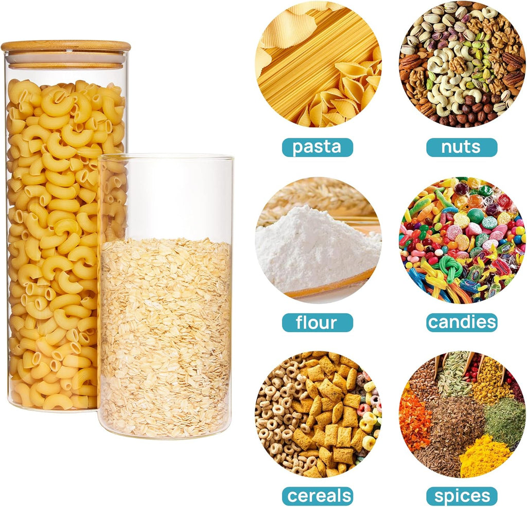 - 【Bom para armazenamento de alimentos secos】 7 recipientes de vidro para alimentos com diferentes volumes atendem a várias necessidades de armazenamento. Eles podem coletar macarrão, nozes, farinha, doces, cereais, especiarias e outras pequenas coisas. Sua despensa e cozinha ficarão bem organizadas com esses recipientes!