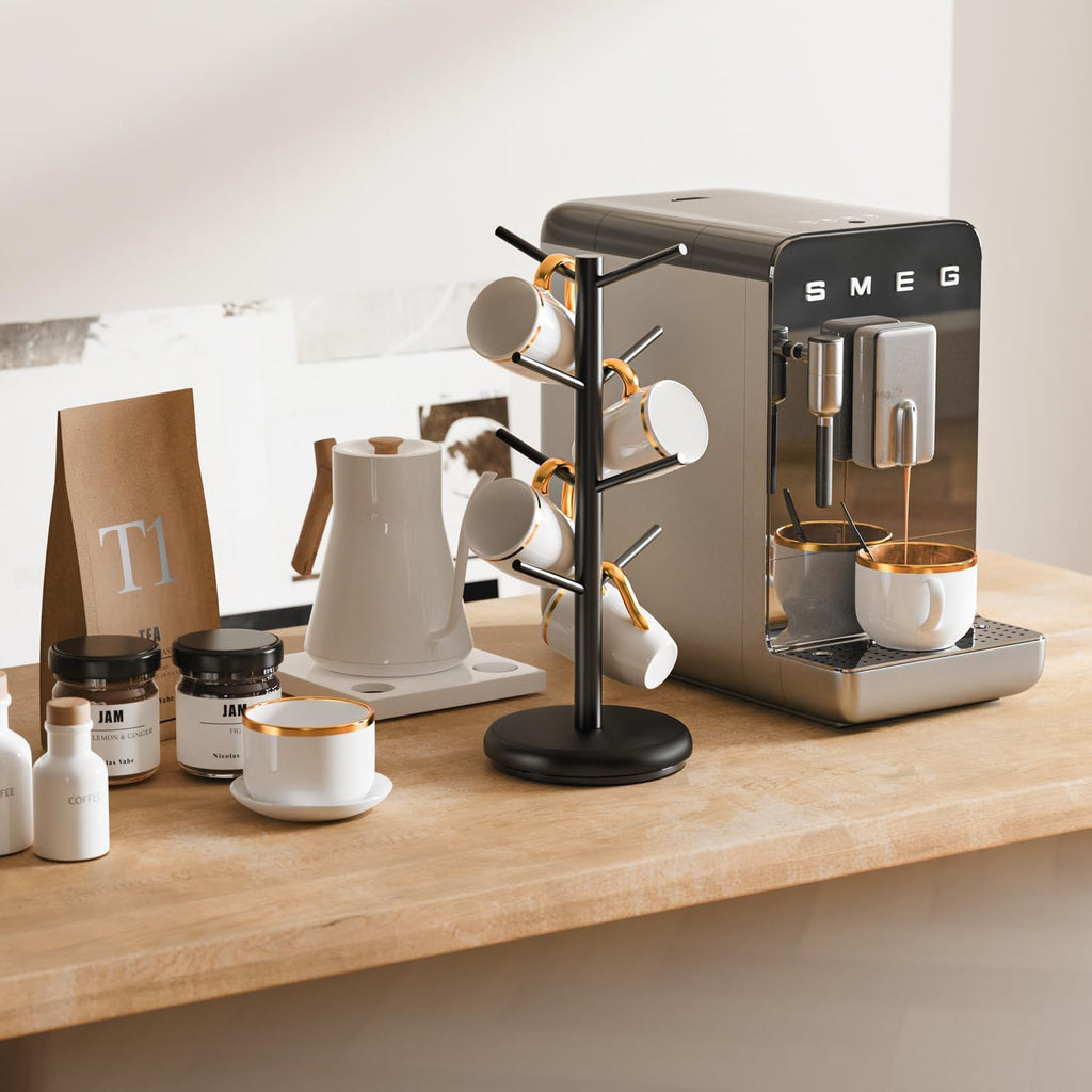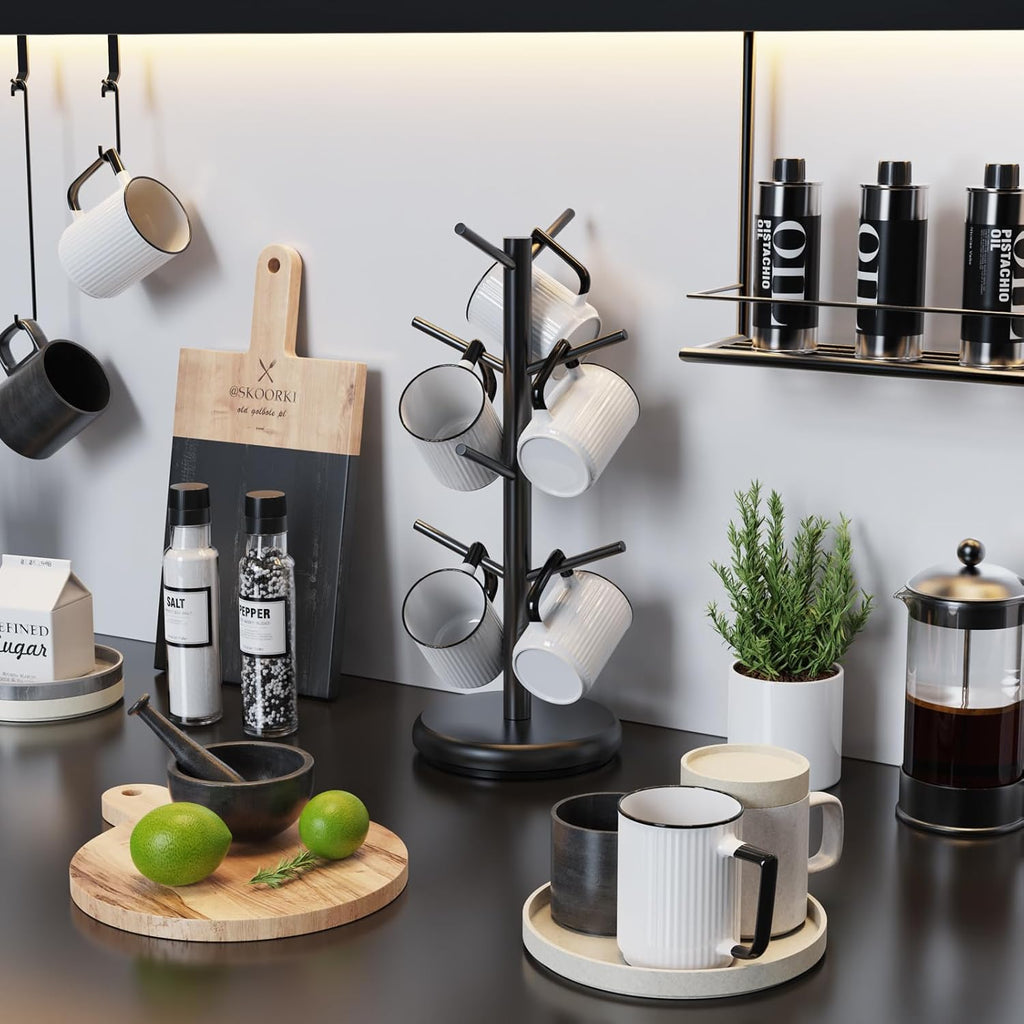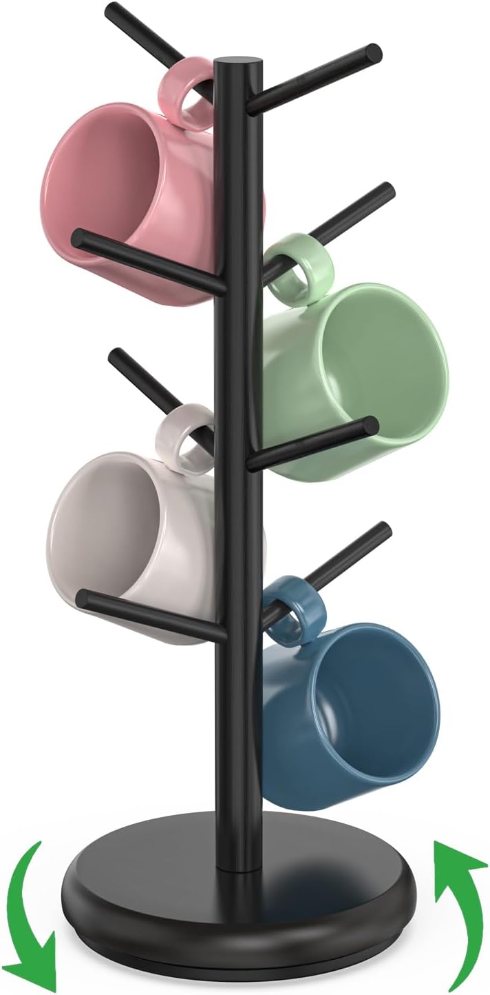 - Grande capacidade: o suporte de caneca tem 8 ganchos, que podem conter até 8 canecas ou copos, tornando-o ideal para famílias ou escritórios.