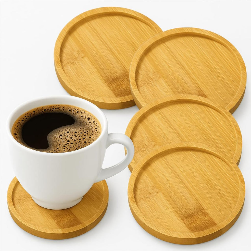 Porta-copos de bambu natural para proteger a mesa contra manchas e riscos. Leve, resistente e de origem renovável.