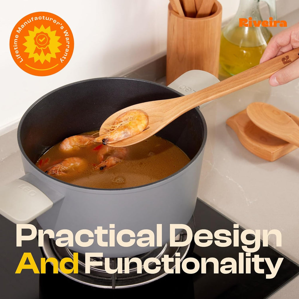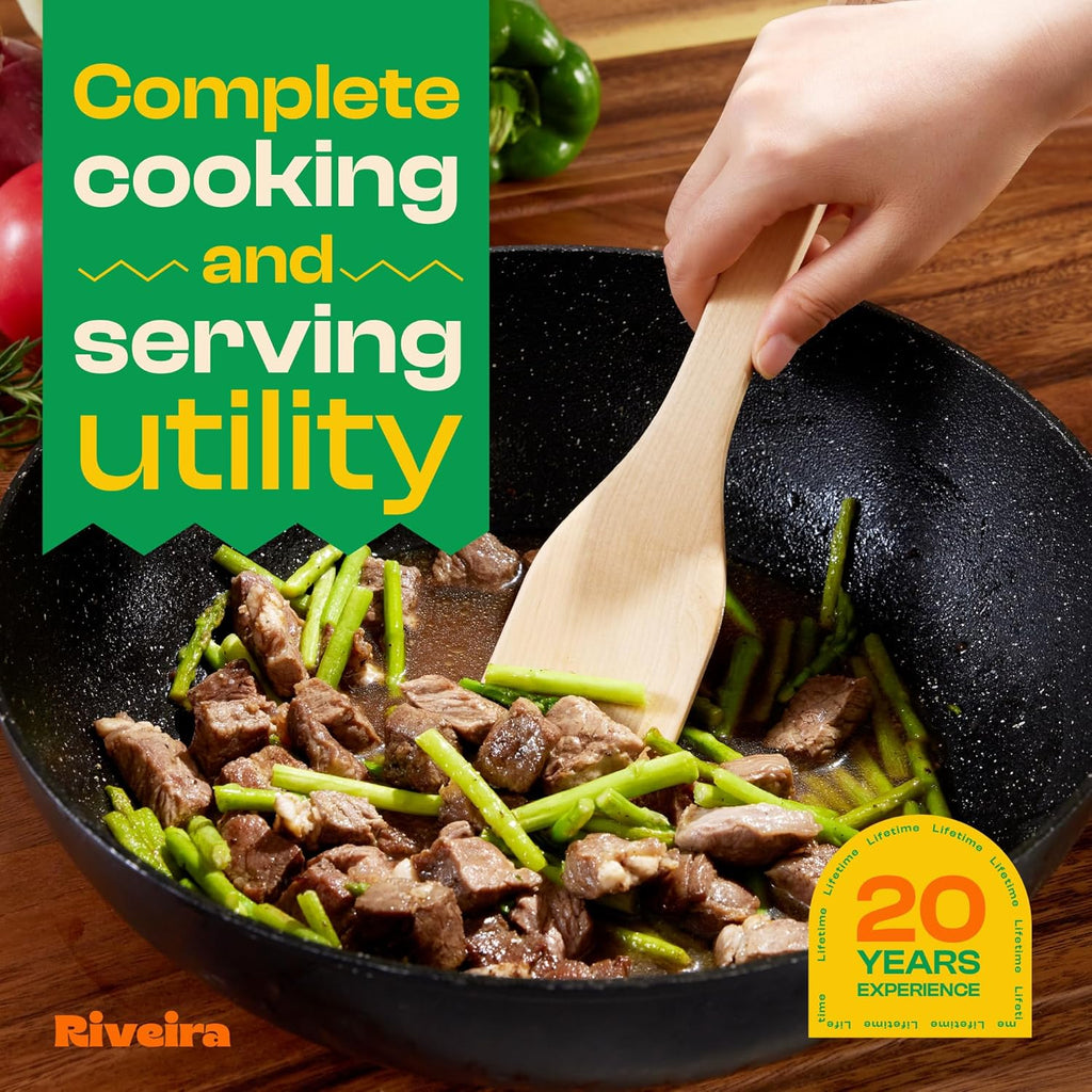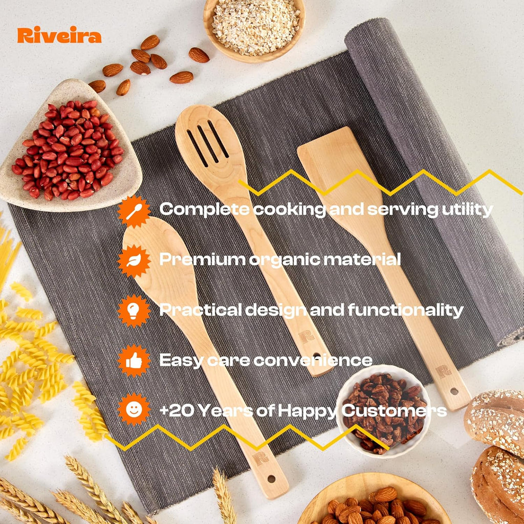 - Design prático e funcionalidade – cozinhe com confiança usando utensílios de cozinha não tóxicos criados para o uso diário. Este conjunto de colheres versátil inclui opções de fenda, sólida e viradora para lidar com uma ampla gama de tarefas. Um conjunto completo de utensílios de cozinha de madeira facilita virar, mexer e provar sem esforço. Projetado como um conjunto confiável de utensílios de cozinha, garante que você sempre tenha a ferramenta certa. Colheres de madeira clássicas e um conjunto de utensílios de cozinha de madeira durável trazem estilo e função a qualquer cozinha.