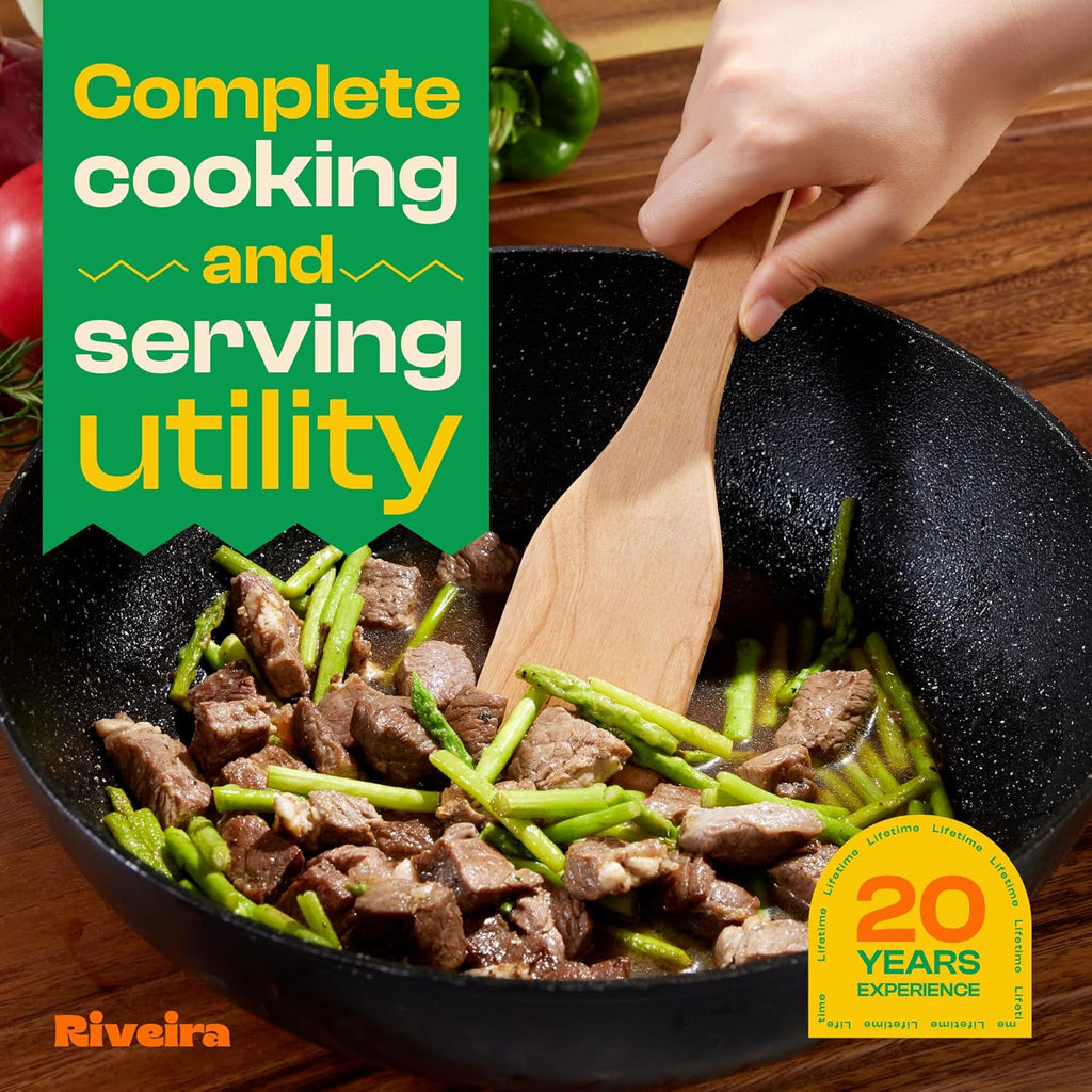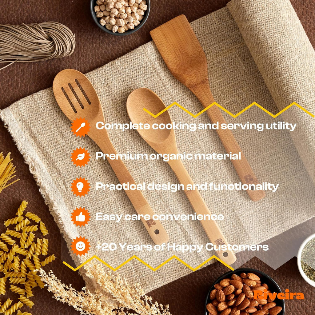 - Utilitário completo de cozinha e servir – Descubra por que este conjunto pertence ao melhor conjunto de utensílios de cozinha não tóxico, oferecendo qualidade duradoura para uso diário. Projetadas para melhorar a decoração do balcão da sua cozinha, essas colheres parecem tão boas quanto funcionam. Um conjunto de utensílios de cozinha de madeira durável facilita virar, mexer e servir. Construído a partir de utensílios de bambu premium, eles resistem a rachaduras e manchas. Utensílios de madeira confiáveis fornecem a ferramenta certa para cada prato.