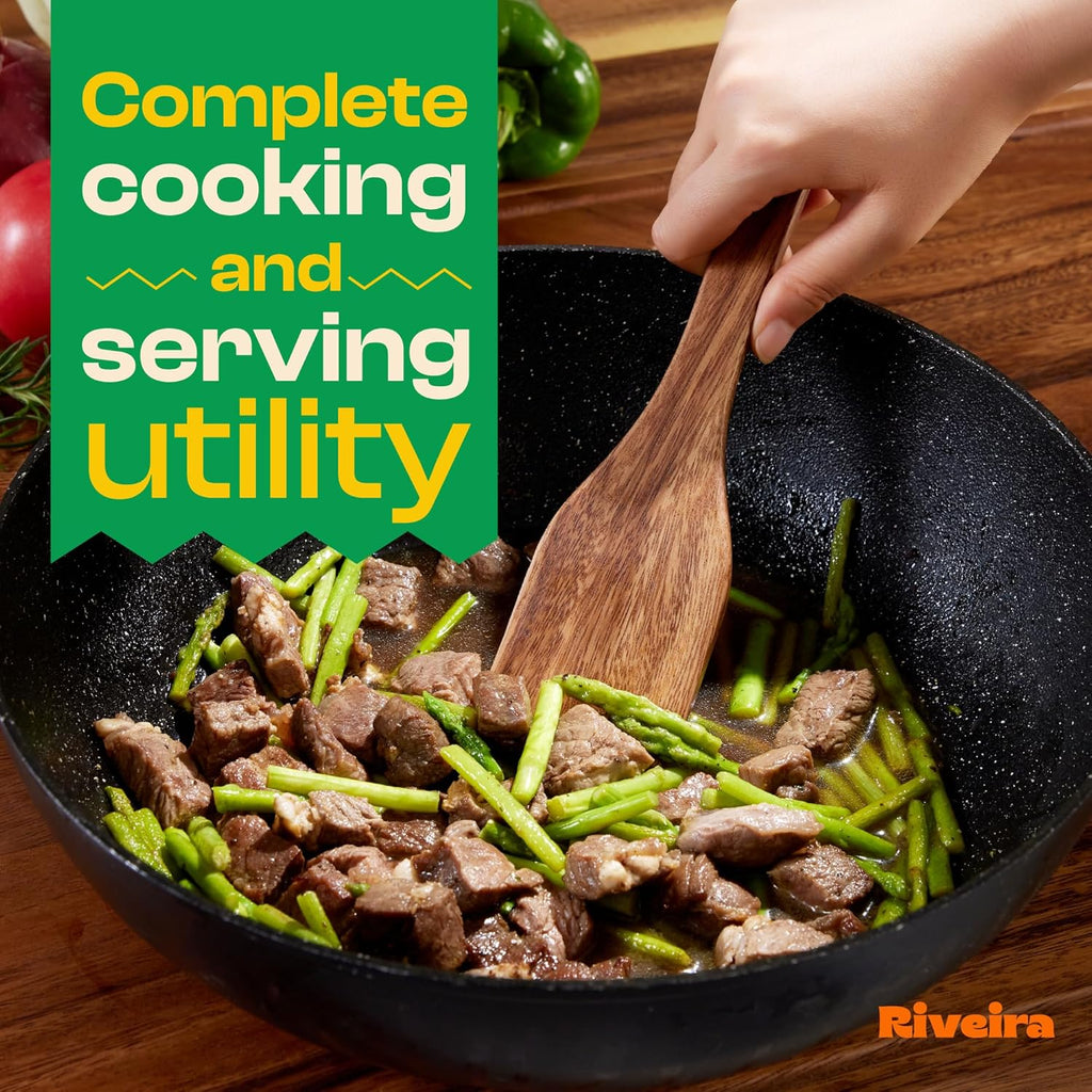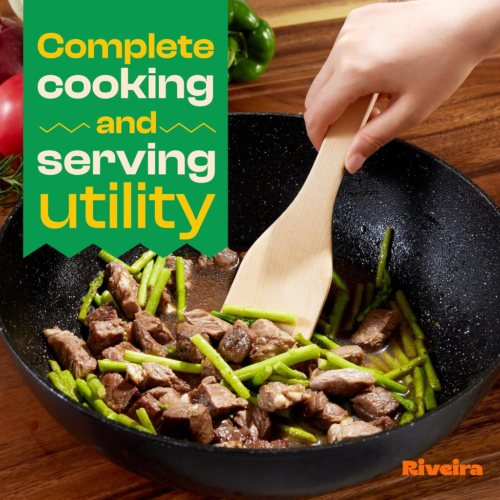- Bambu de alta qualidade – Atualize sua cozinha com um conjunto de utensílios de madeira para cozinhar feito de bambu 100% orgânico que é seguro para cada panela e panela. Uma espátula de madeira durável para cozinhar garante virar e mexer suavemente sem arranhar as panelas. Utensílios de cozinha de bambu versáteis resistem a manchas e odores para frescor de longa duração. Cada espátula de madeira é leve, mas resistente, perfeita para refeições diárias. Este conjunto de utensílios de cozinha de madeira faz parte dos melhores conjuntos de utensílios de cozinha para chefs domésticos.