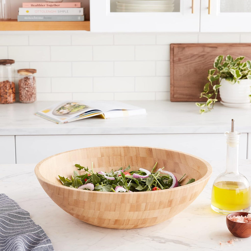 - 1 saladeira de madeira de bambu - Medidas: 18 cm de diâmetro x 6 cm de altura